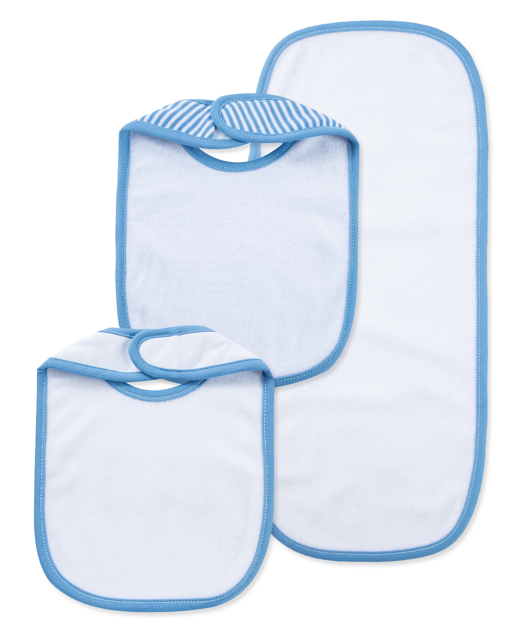 - Set includes 2 coordinating bibs and 1 burp cloth
